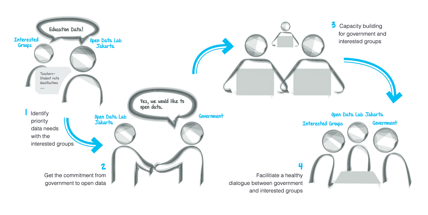 This is just a fancy way of saying, let’s not be method- or approach-focused. When we started the Open Data Lab Jakarta some eight years ago, we developed and tested what we called the “Responsive Open Data Model”. We argued (and we still argue now) that disclosure of a few data sets that users need is much better than disclosure of a plethora of datasets that are not relevant. Building capacity and use cases around those relevant datasets will lead to more impactful results, especially when products from the process influence policy and practice within government.