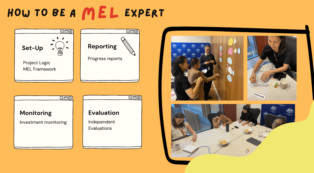 I tried to experiment with bite-sized learning activities in my current role as Program Performance and Quality Advisor at Mekong Australia Partnership – Water Energy Climate. My goal was to strengthen knowledge and skills of investment managers in monitoring, evaluation, and learning (MEL), so we, as a team, will deliver not only impactful programs but also share a compelling narrative of accomplishments based on available data.