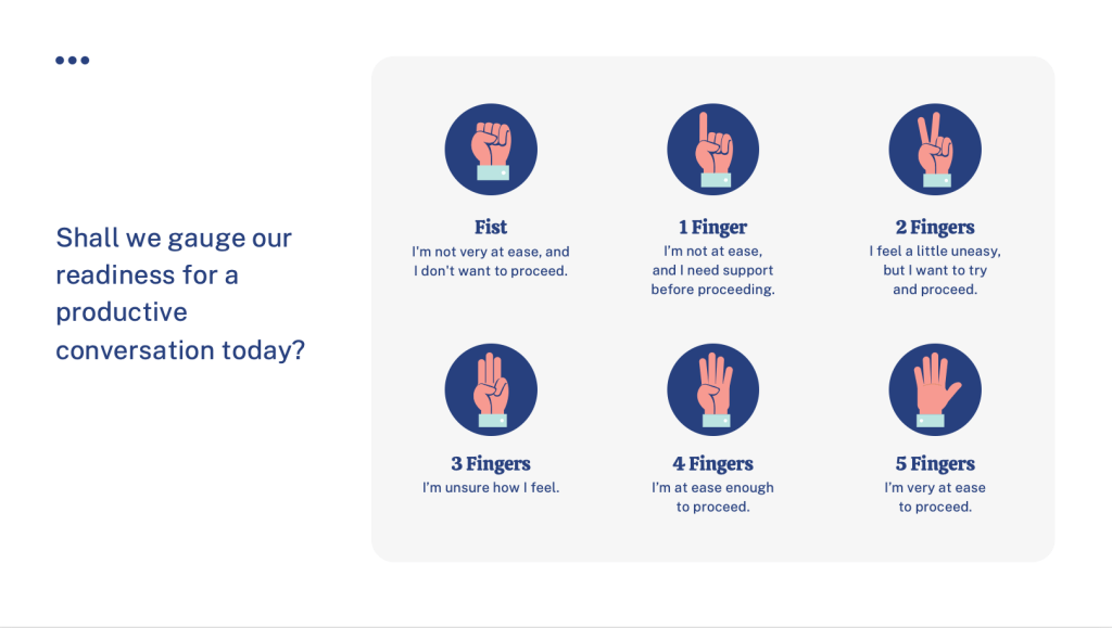 Third, it helps to determine participants’ readiness to engage in productive conversations and define common values to ground the convening.