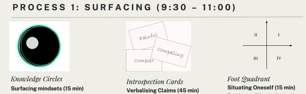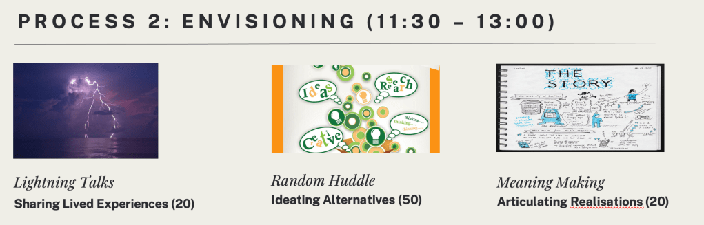 The sessions above were all participant-led. I was just at the corner giving out instructions and keeping watch of the time, as there is this tendency of people with very rich experiences to keep on talking, so this was something I need to manage. In this case, I did not provide the content – they all collectively defined their own learning journey.